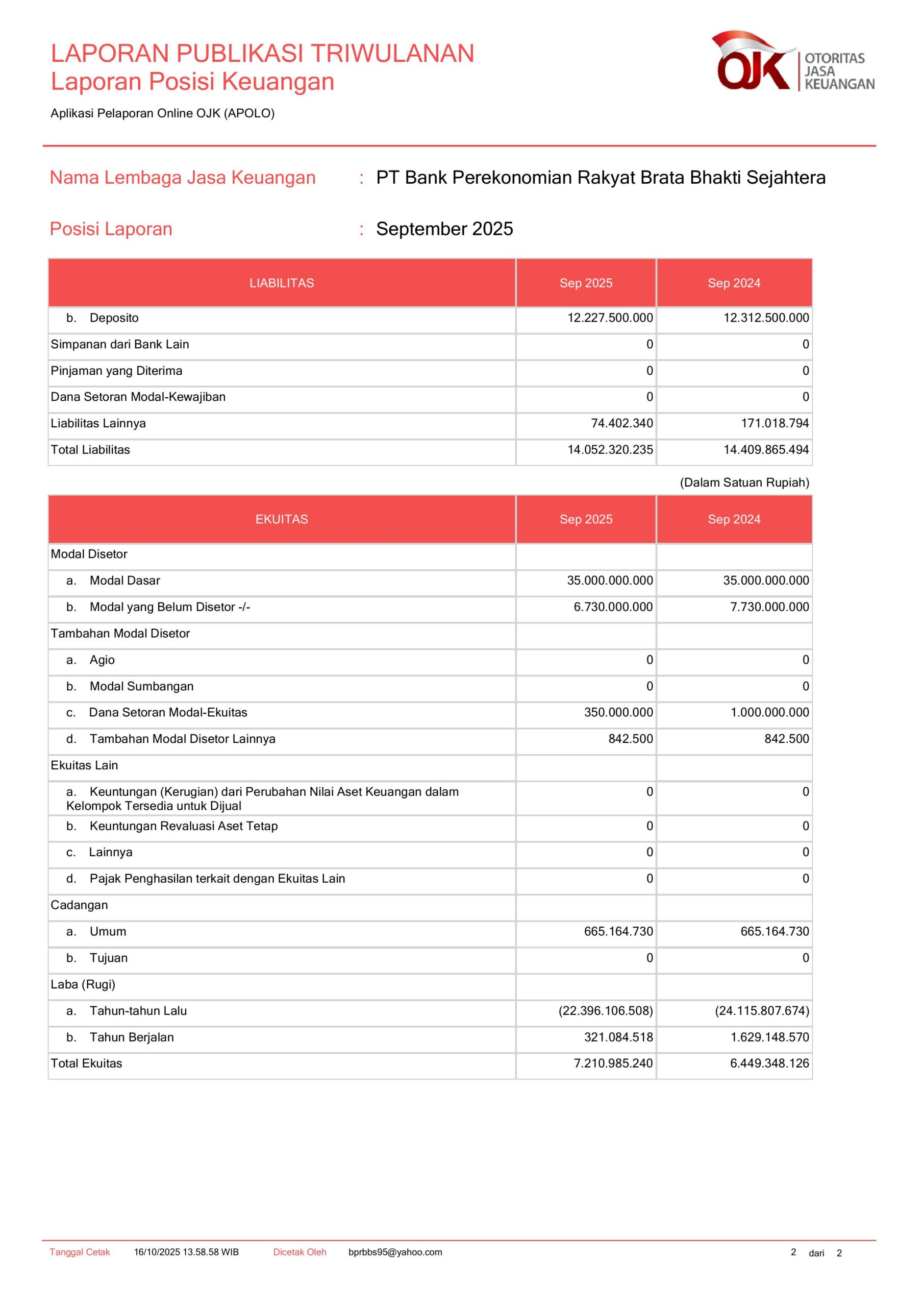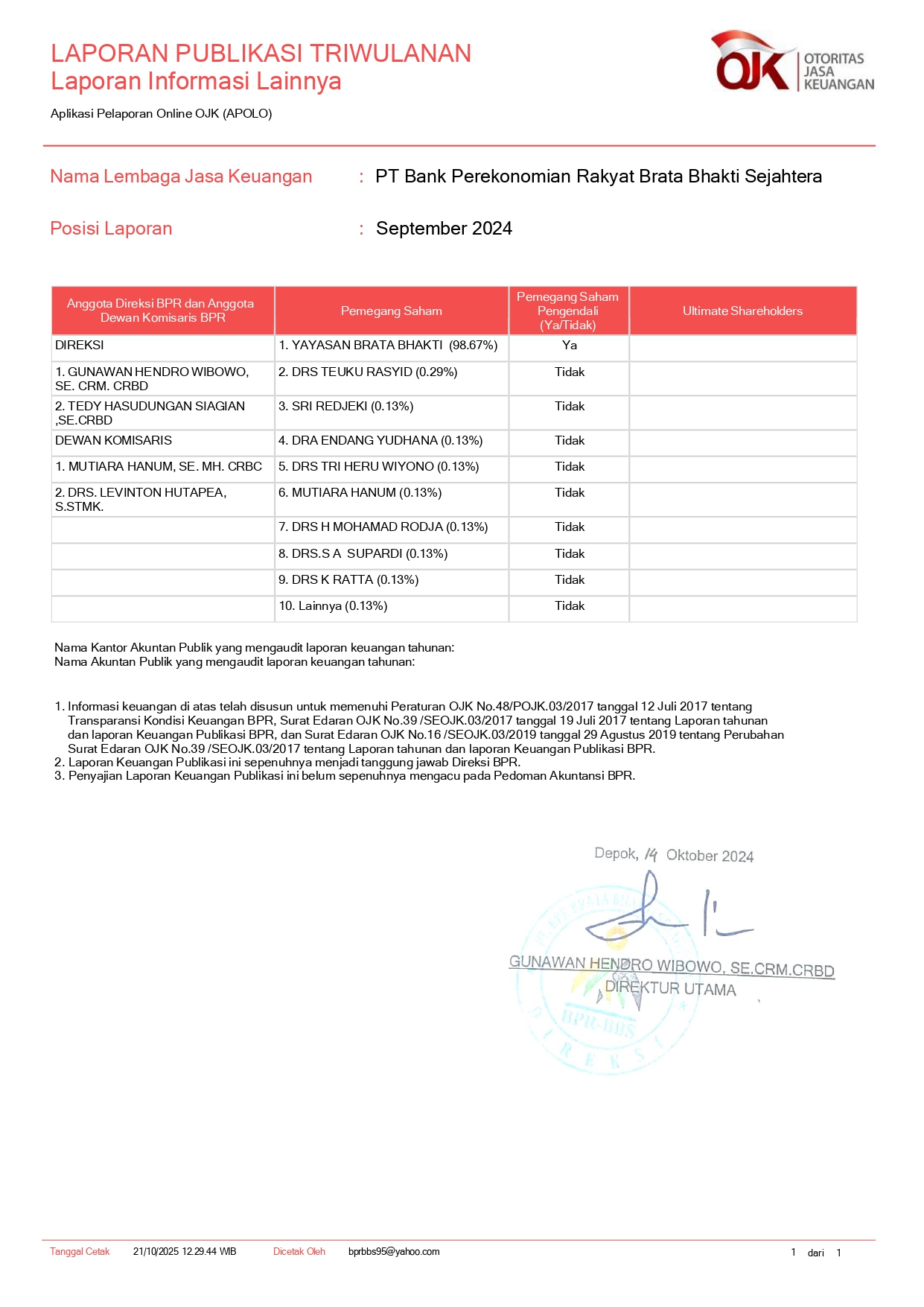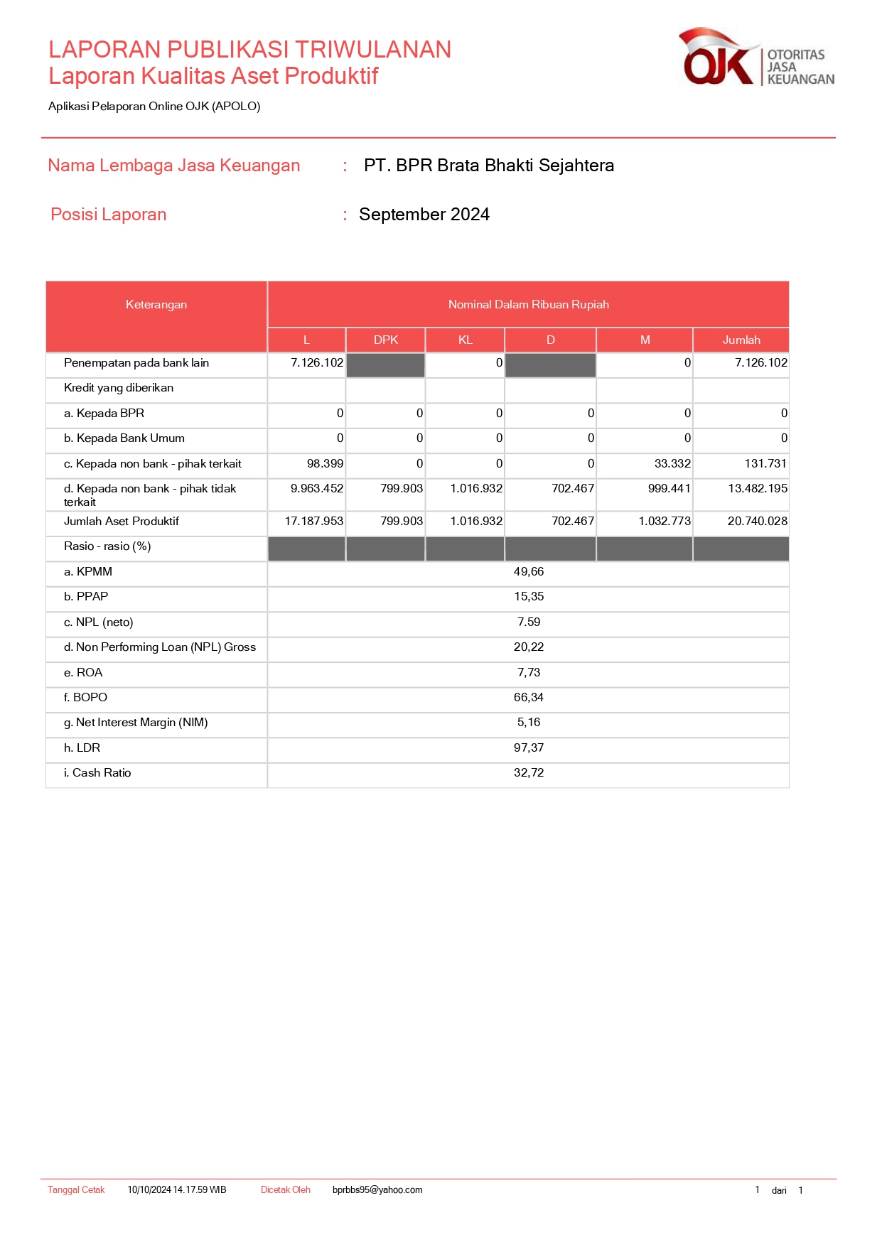 LAPORAN TRIWULAN III SEPTEMBER 2024