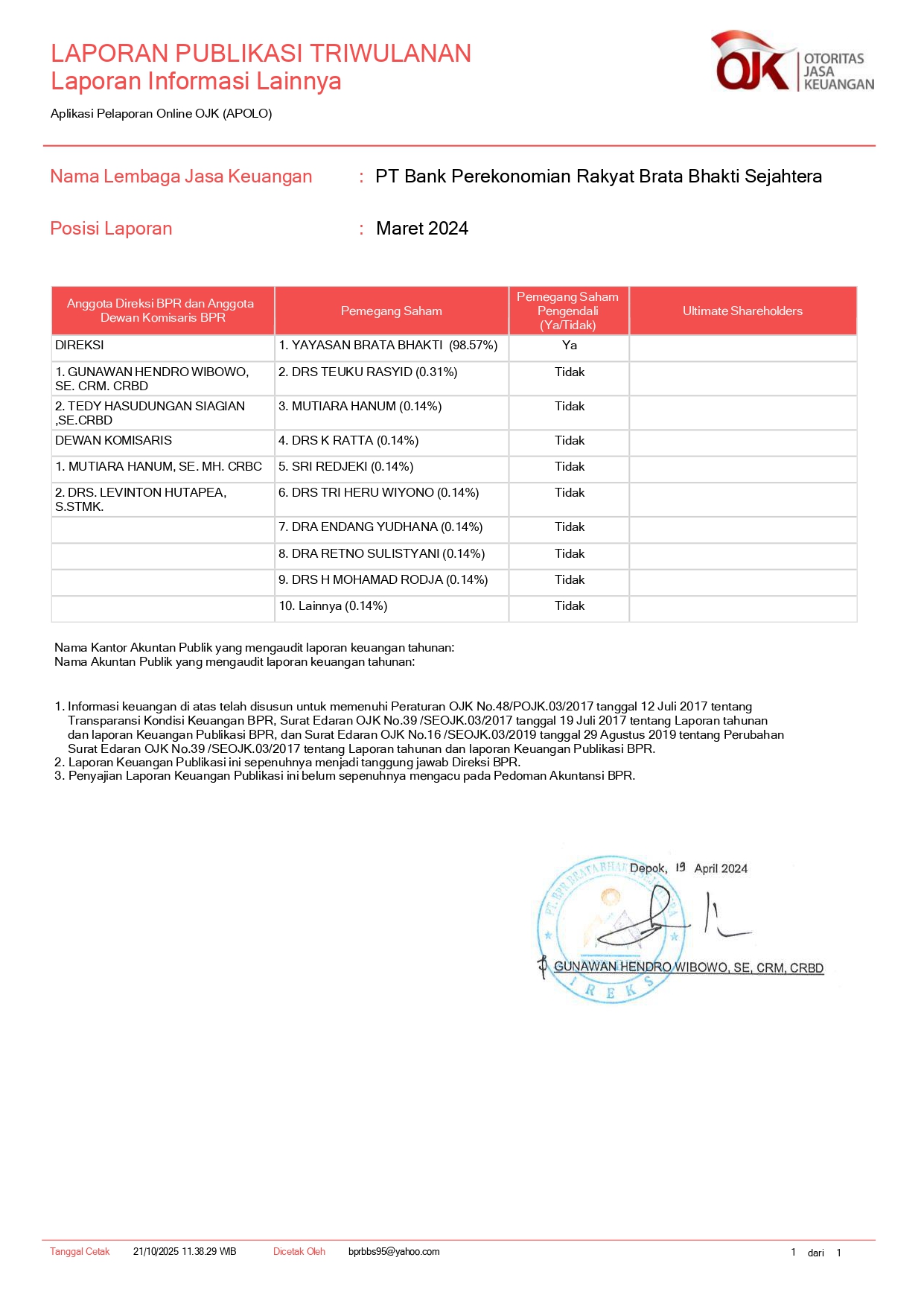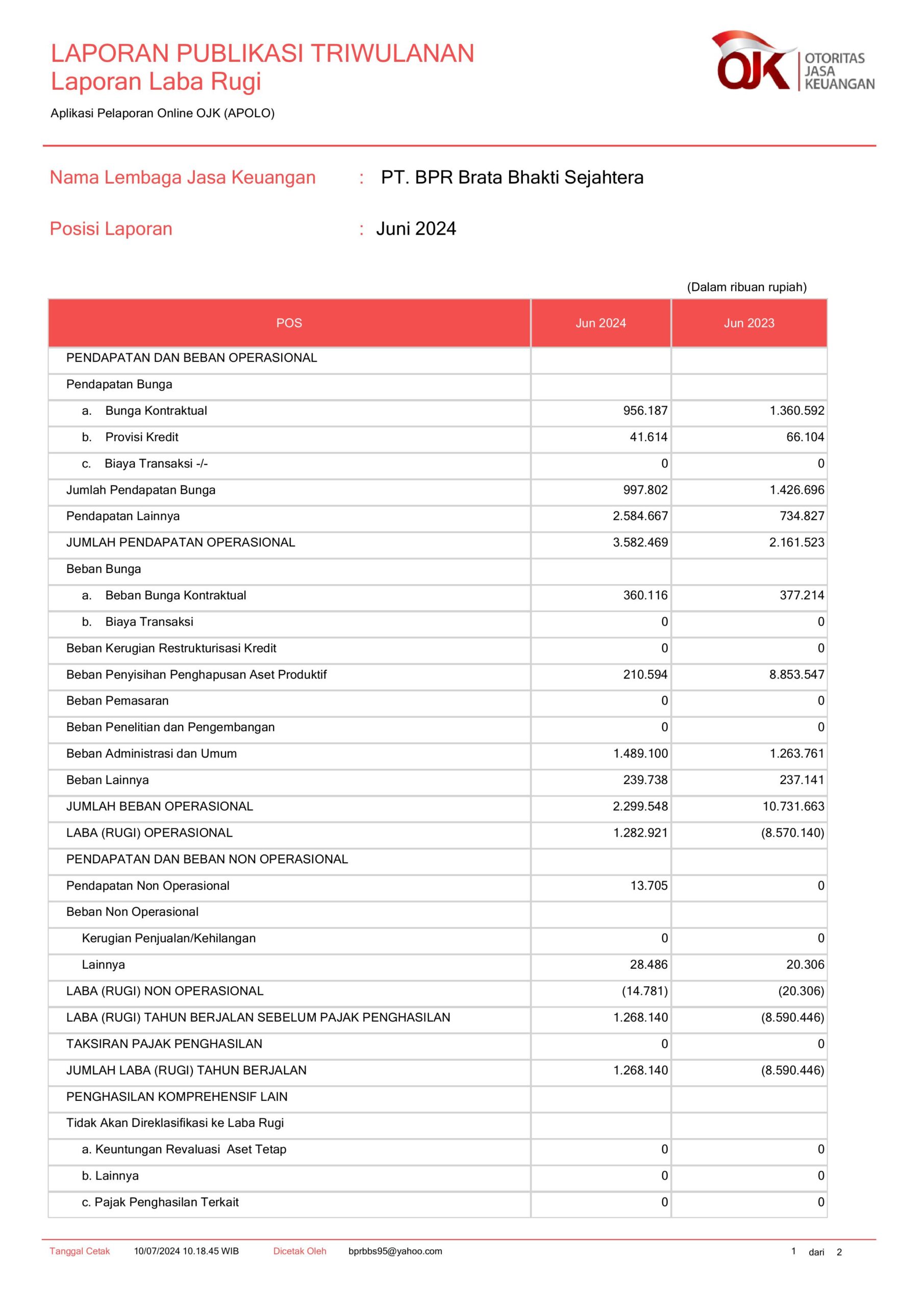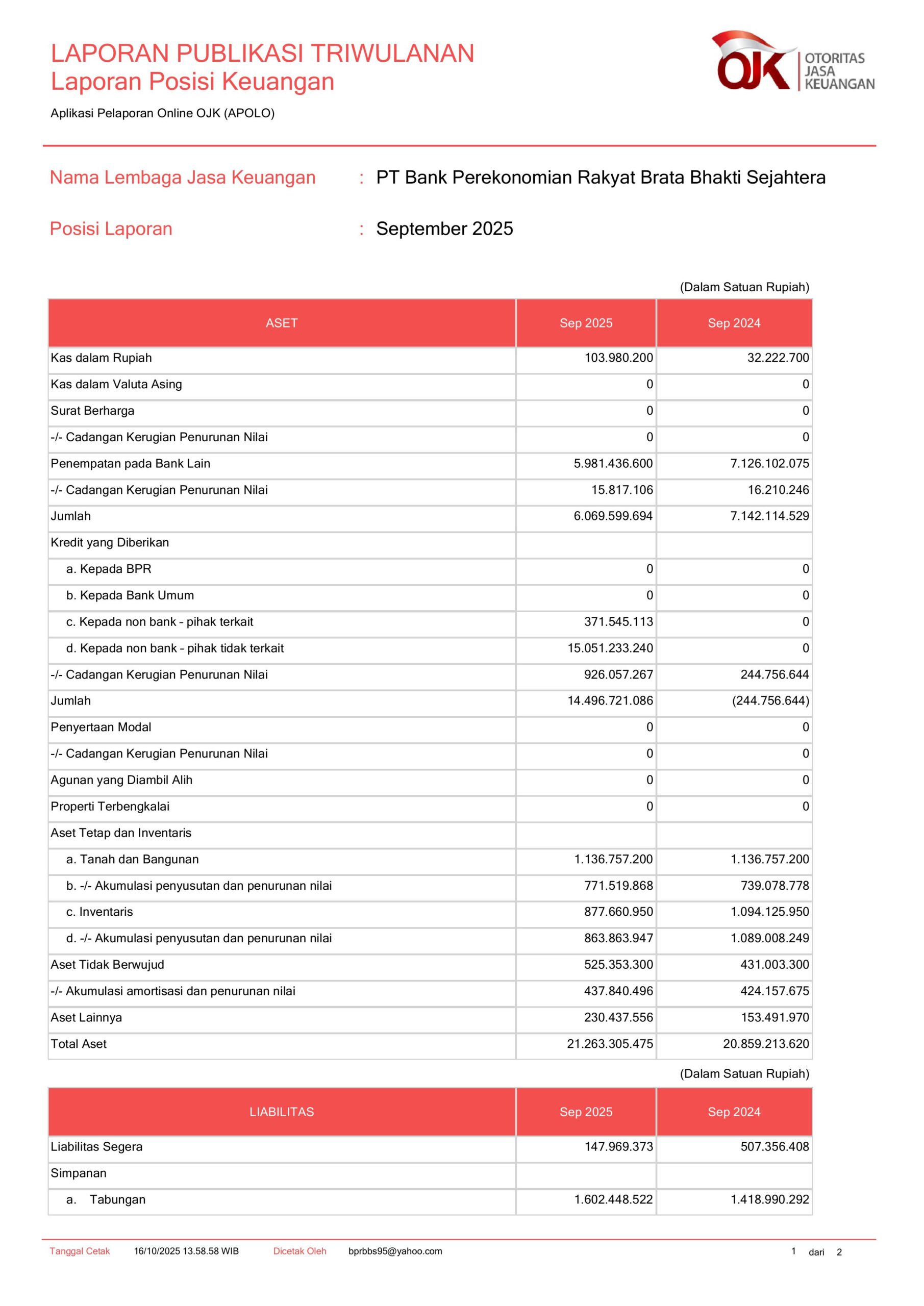 LAPORAN TRIWULAN III SEPTEMBER 2024