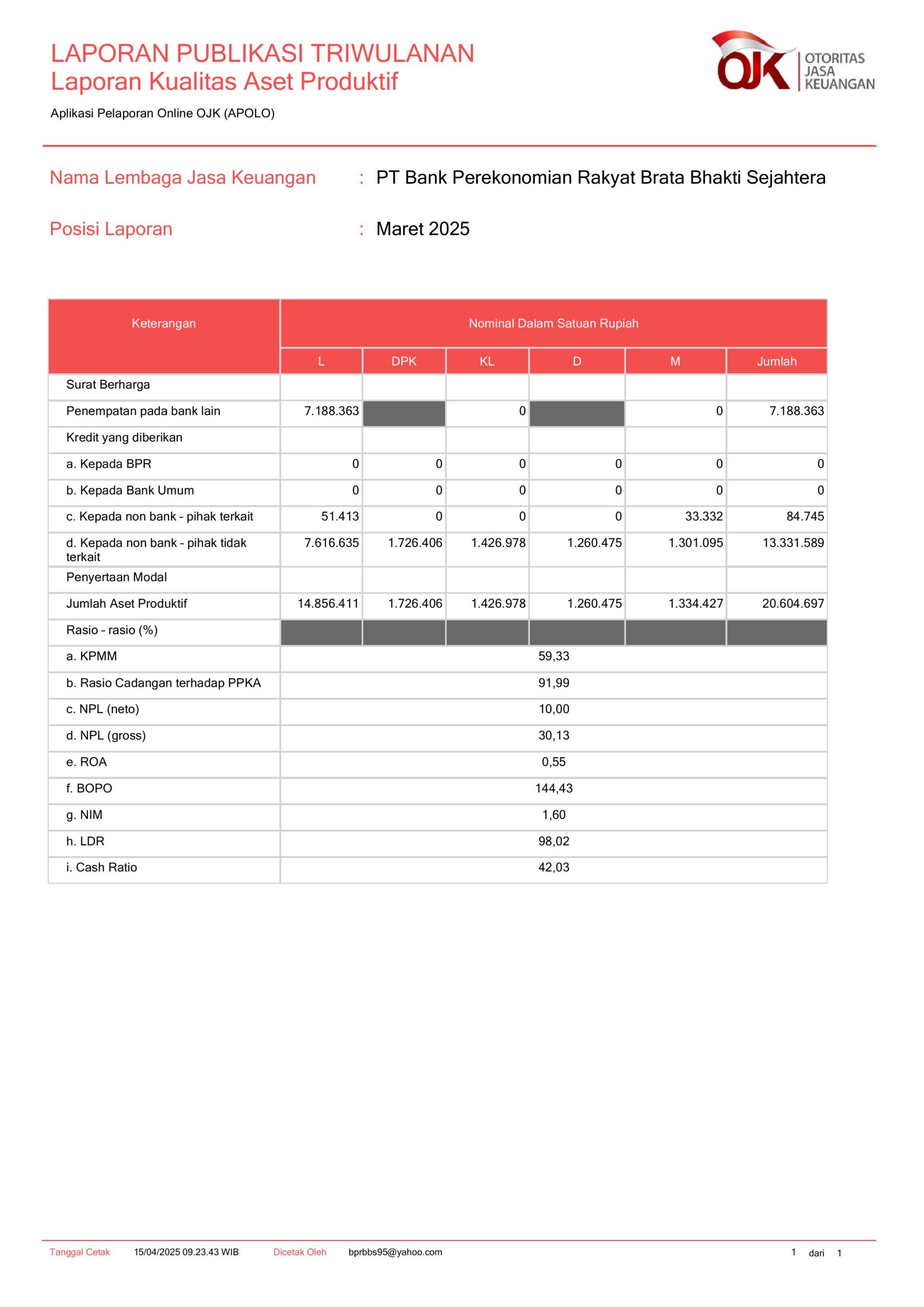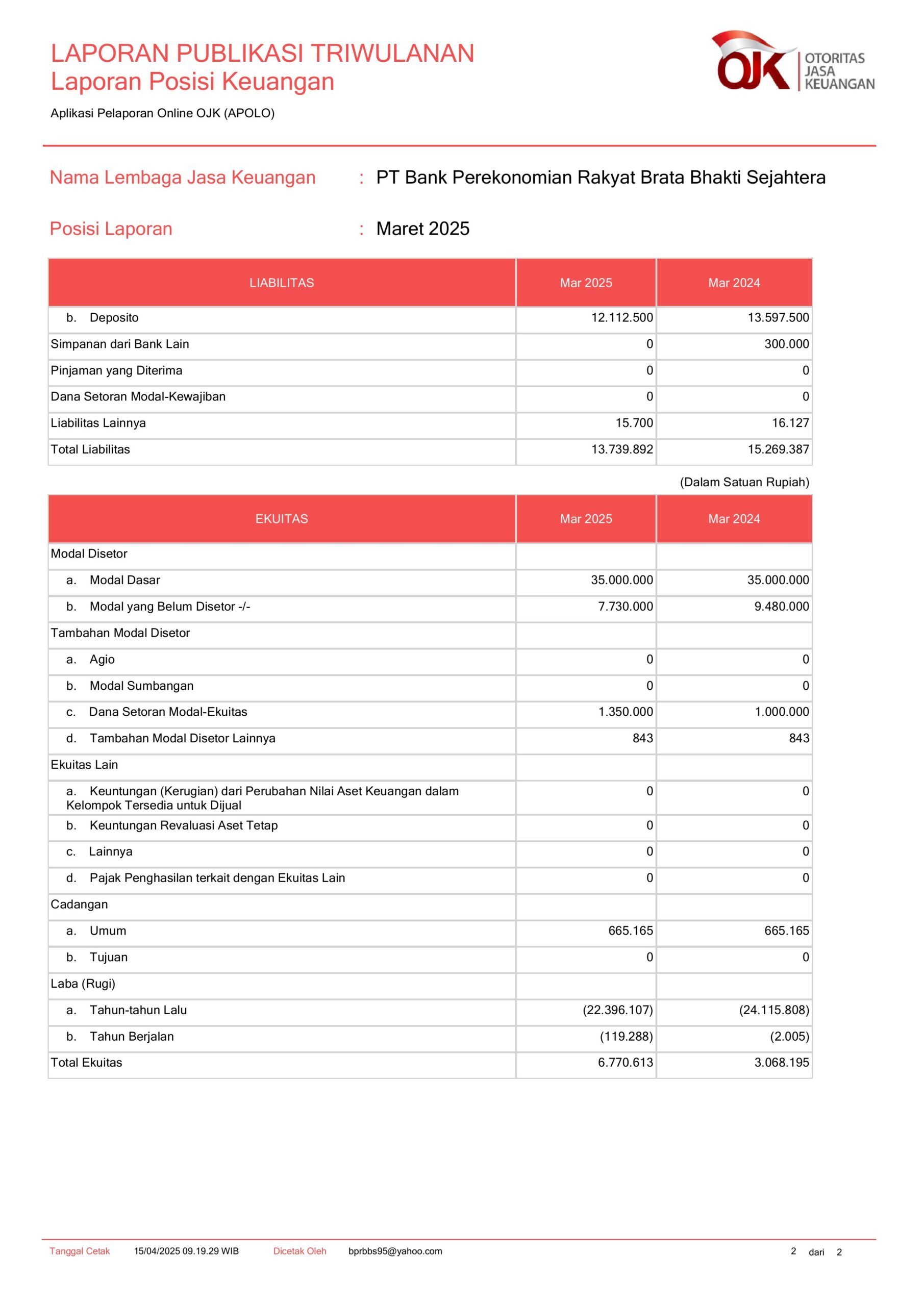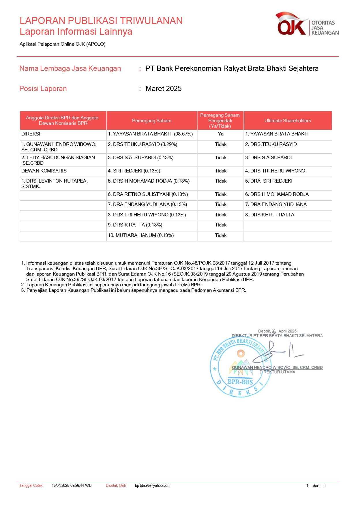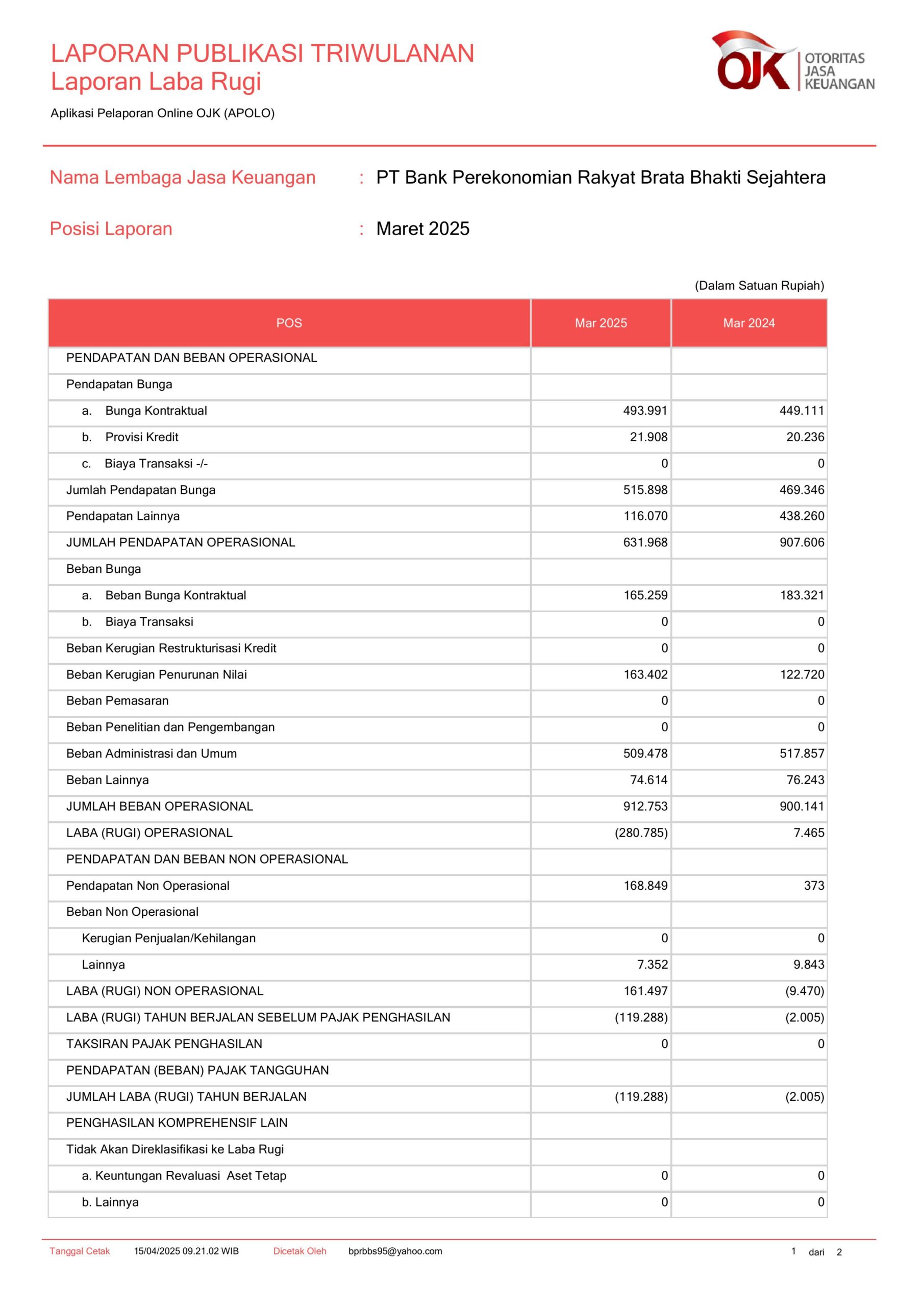 LAPORAN PUBLIKASI TRIWULAN I 2025