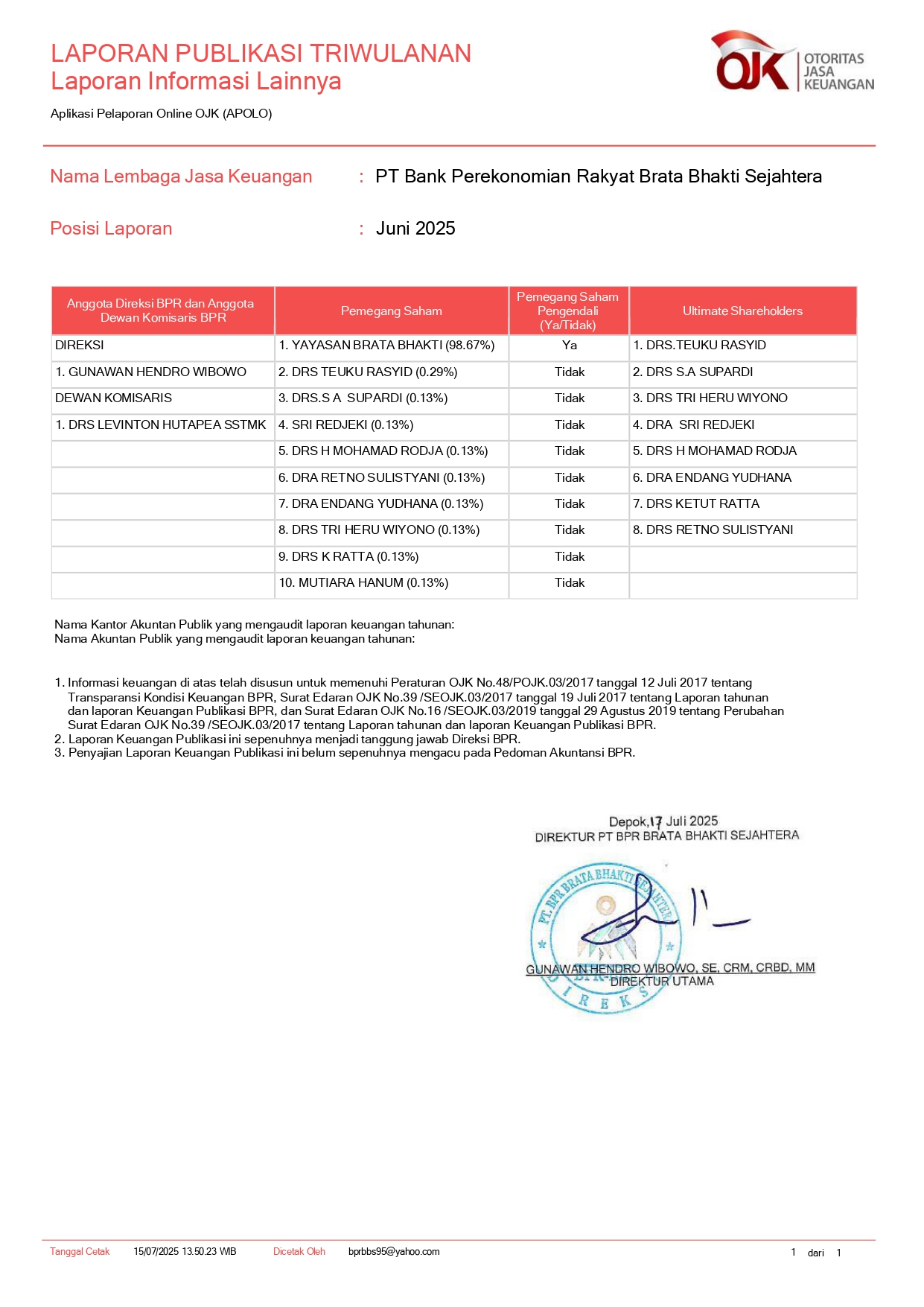 LAPORAN PUBLIKASI TRIWULAN II 2025